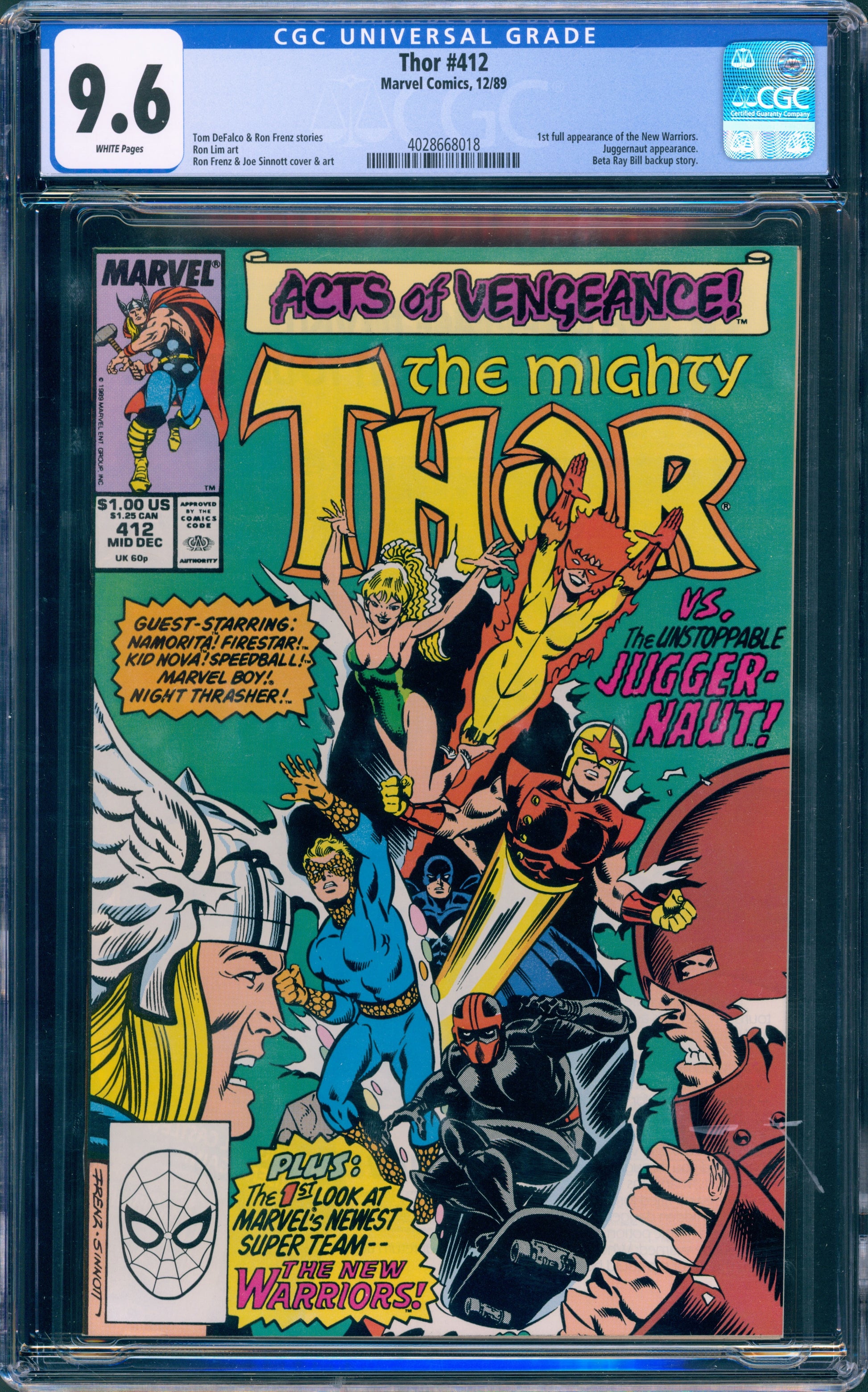 Thor #412 CGC 9.6 (1st New Warriors)